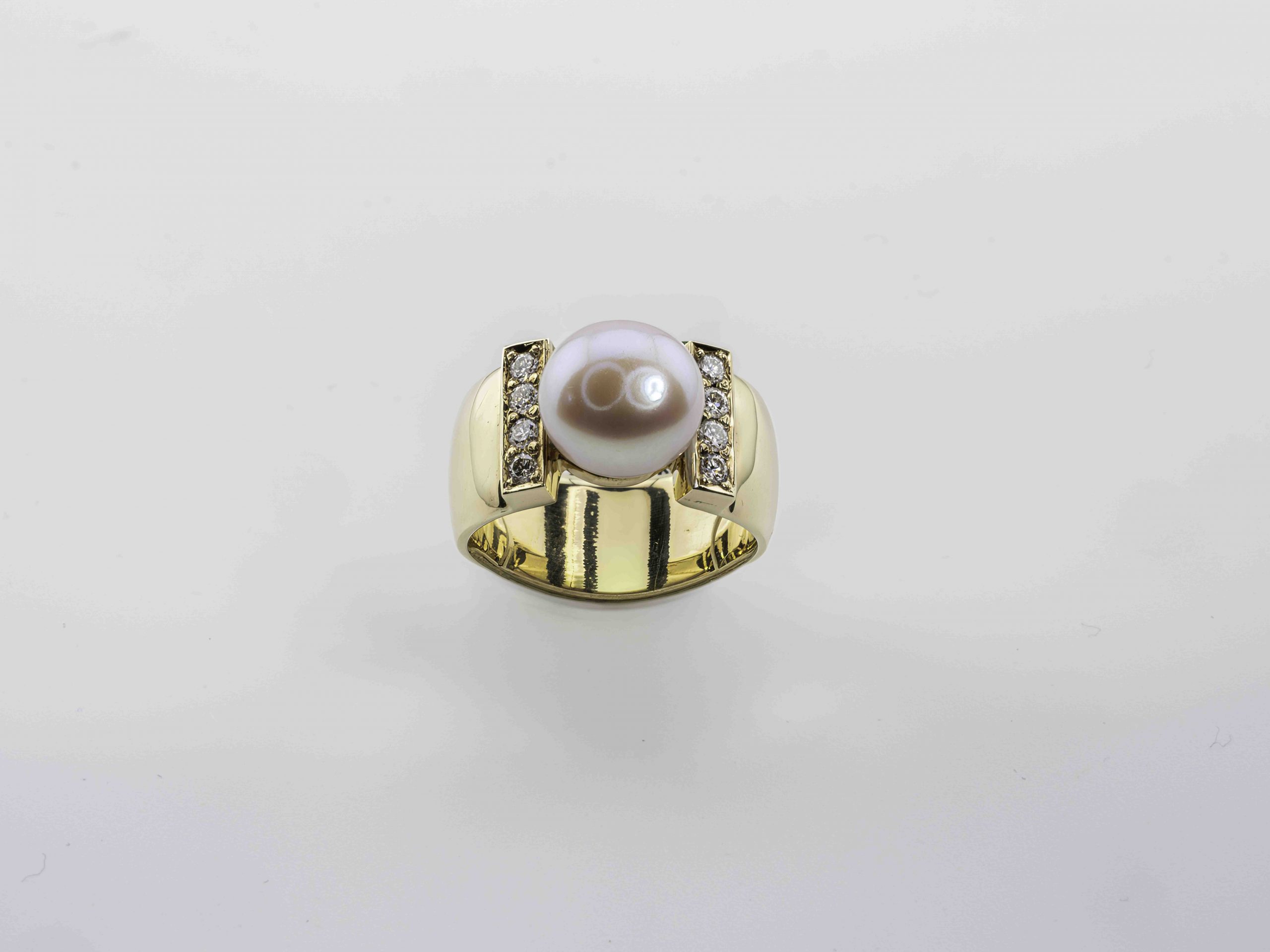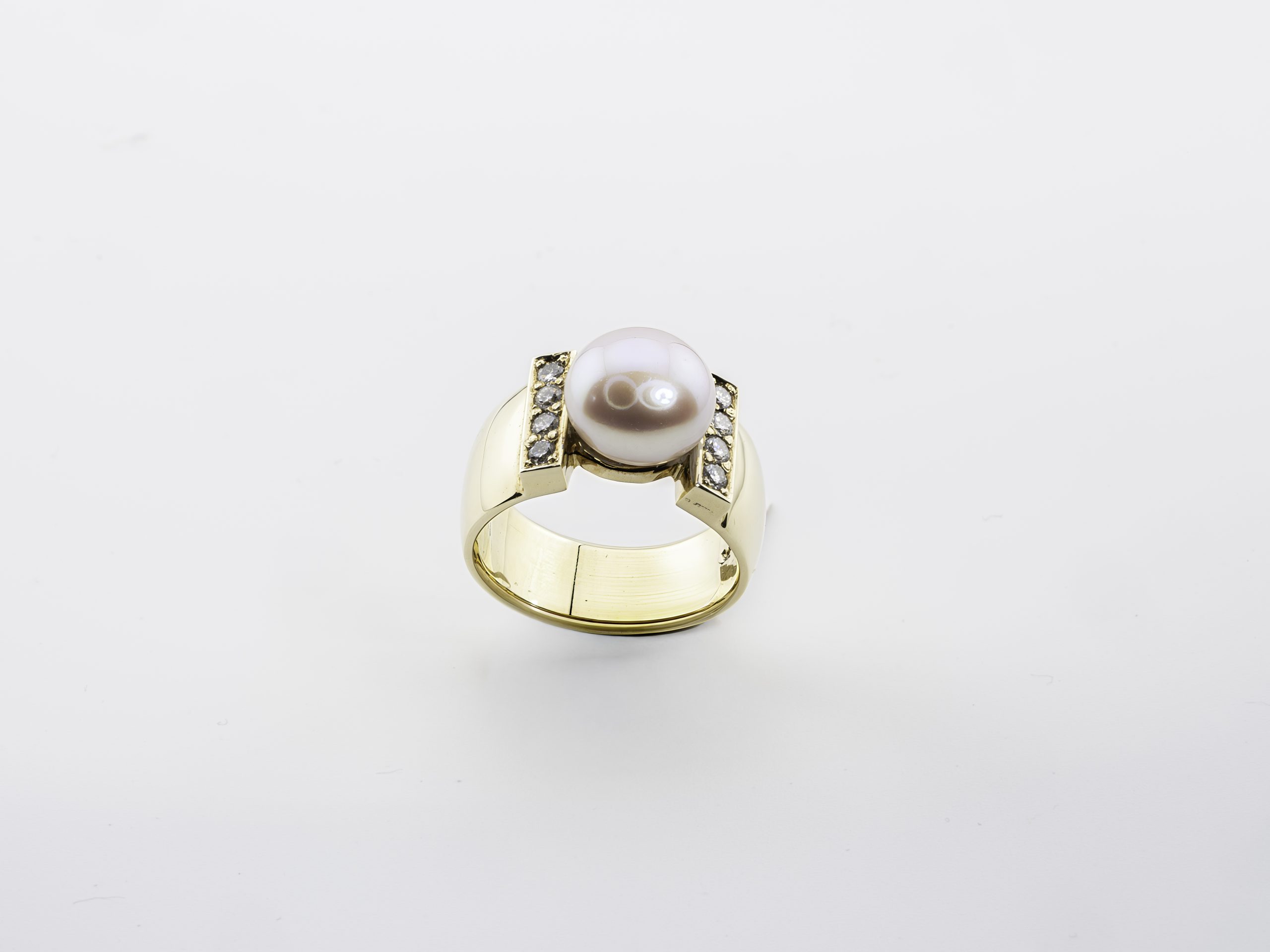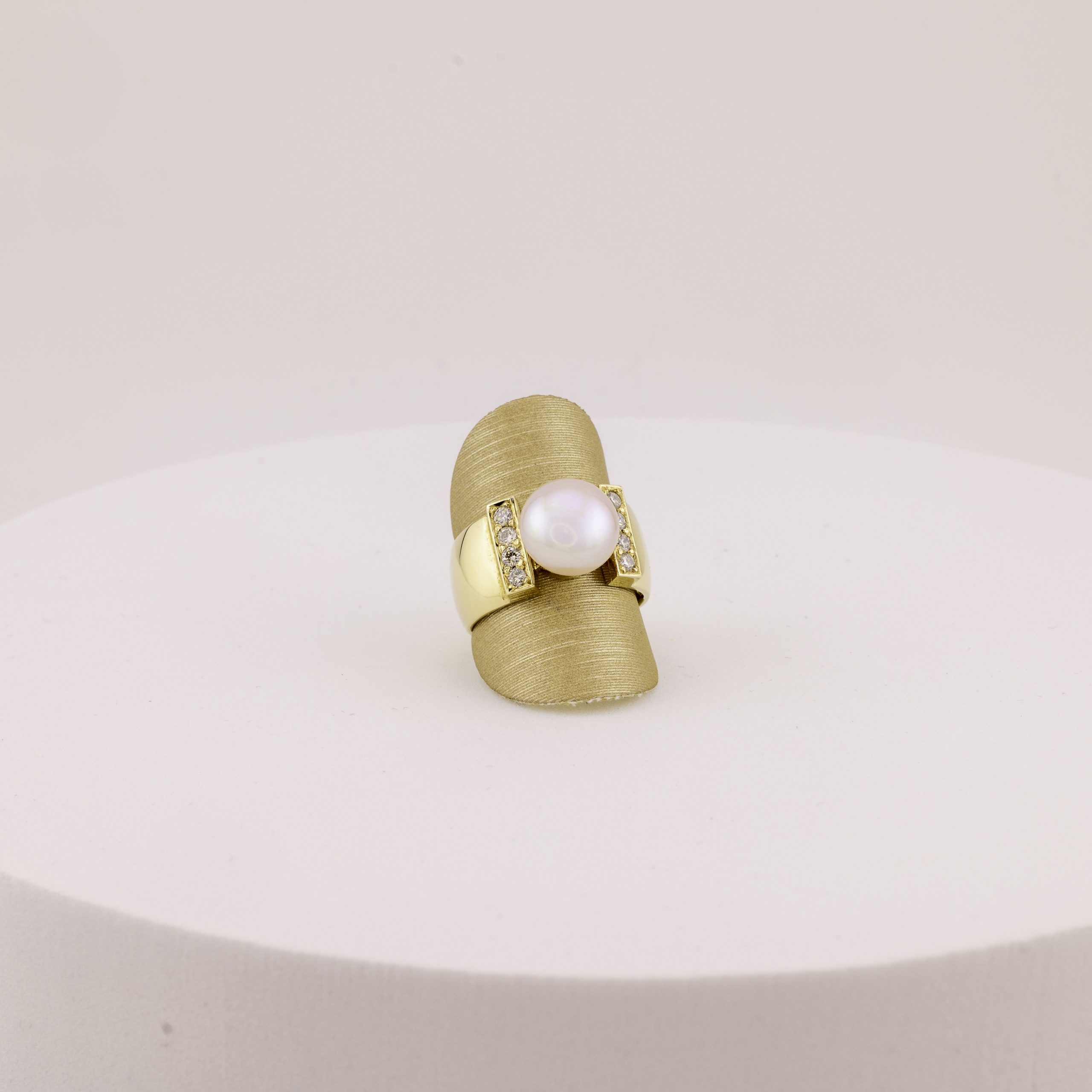 Das harte Edelmetall, die weich wirkende Perle und die Brillanten, die nur aus Licht zu bestehen scheinen, lassen zusammen etwas Neues, Einzigartiges entstehen!