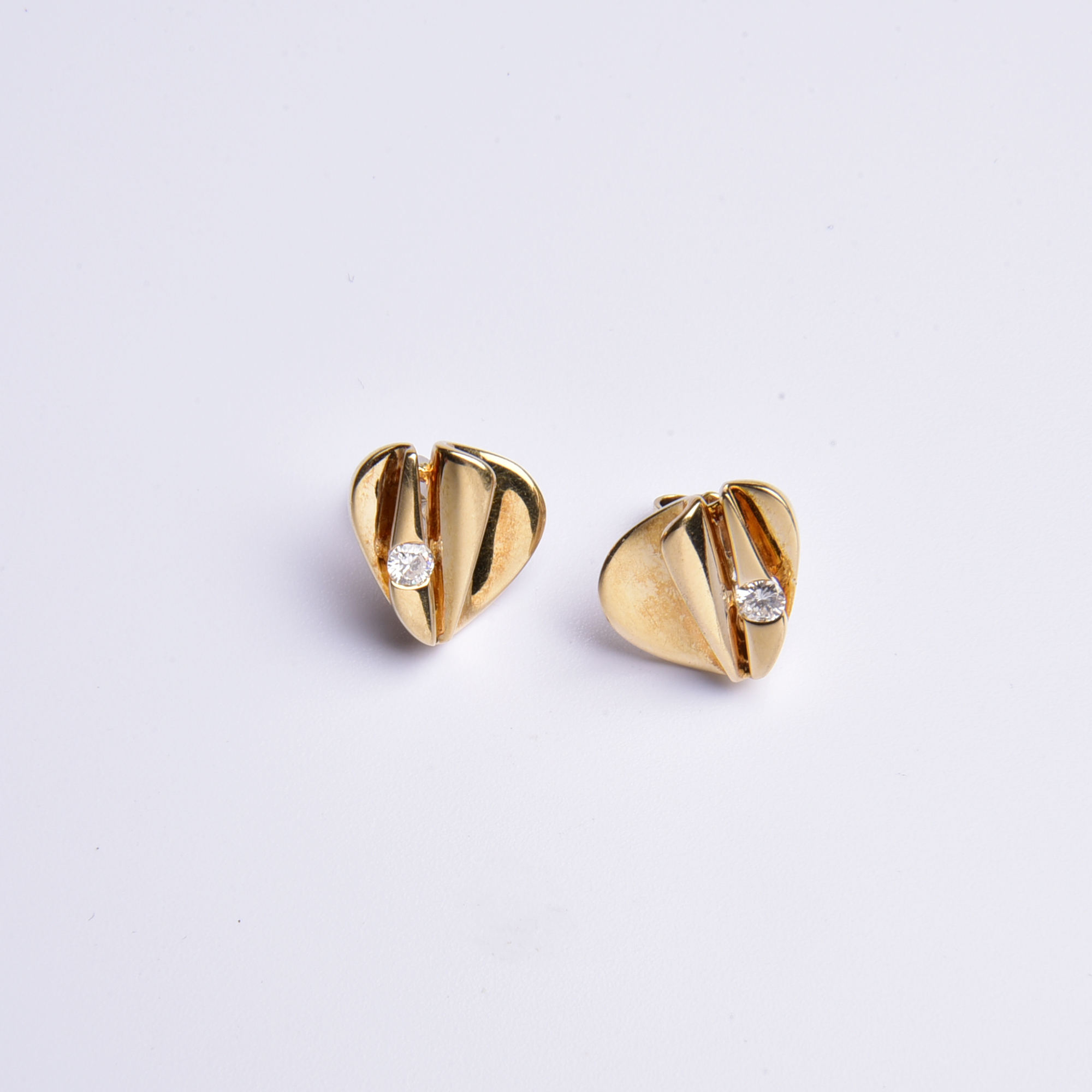 Die Fältelung ist fast skulptural gestaltet – blitzende Brillanten veredlen den Ohrschmuck aufs Schönste.