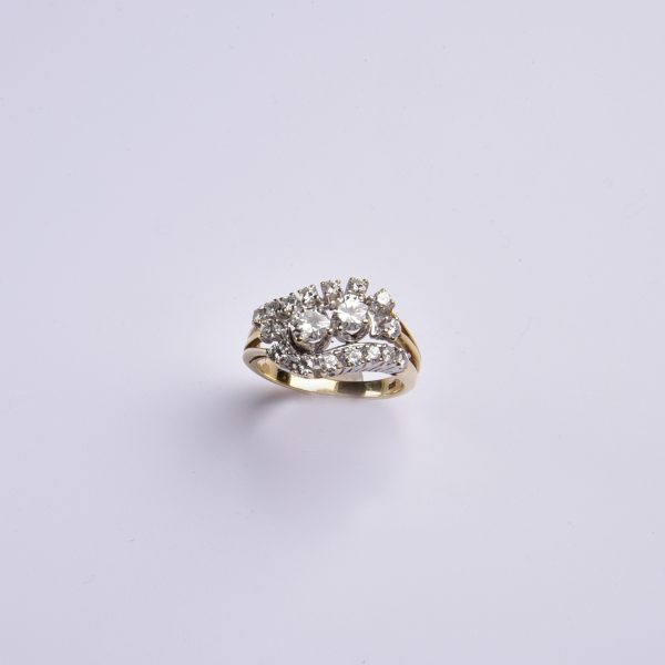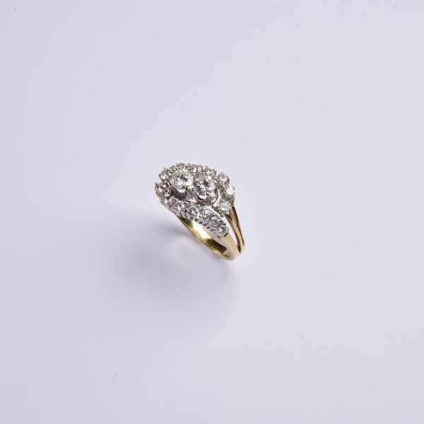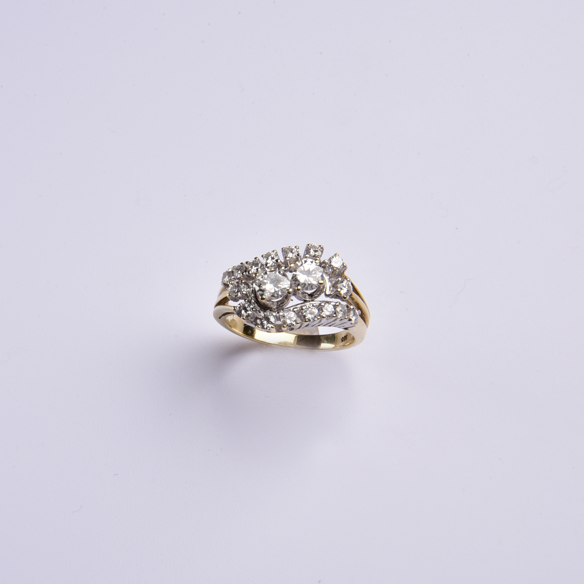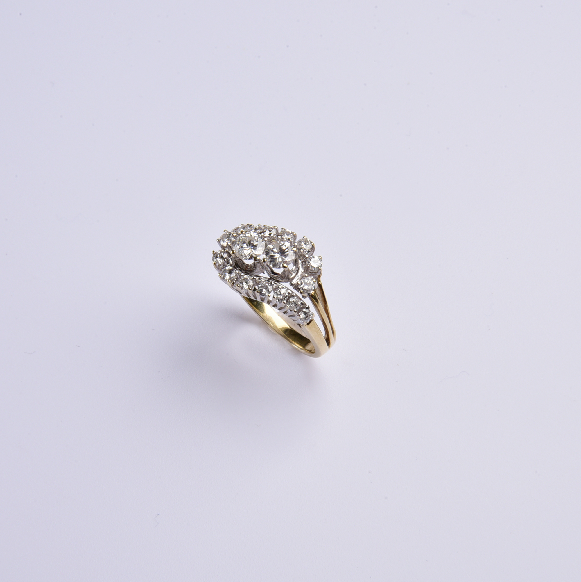 Der hier vorliegende Ring ist aus 585 Gelbgold geschmiedet und reich mit qualitätvollen Brillanten besetzt.