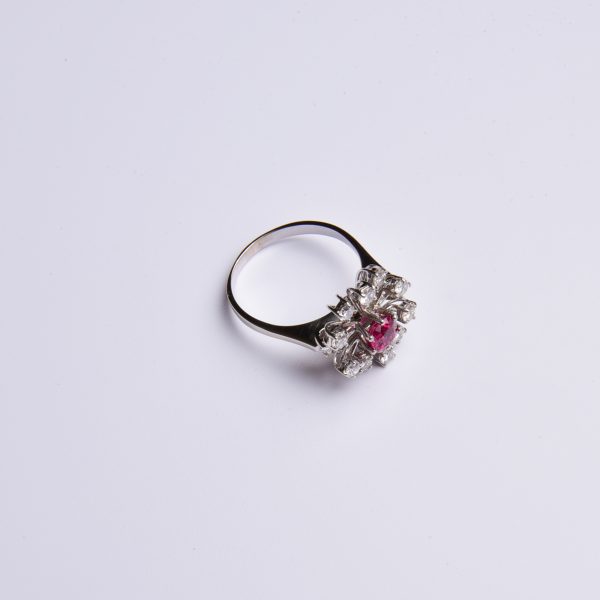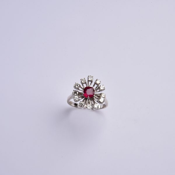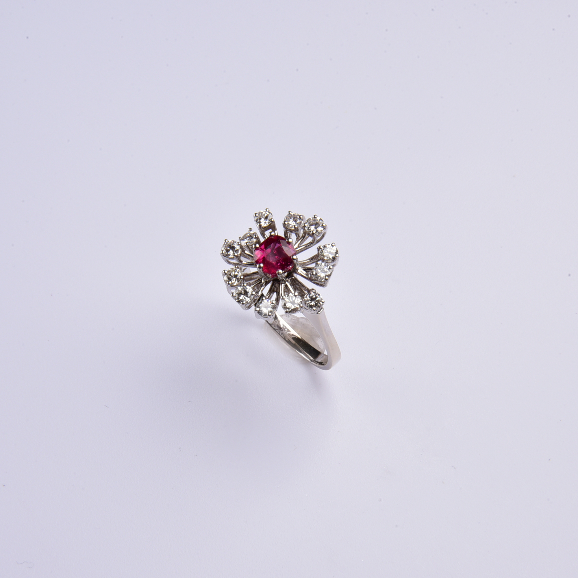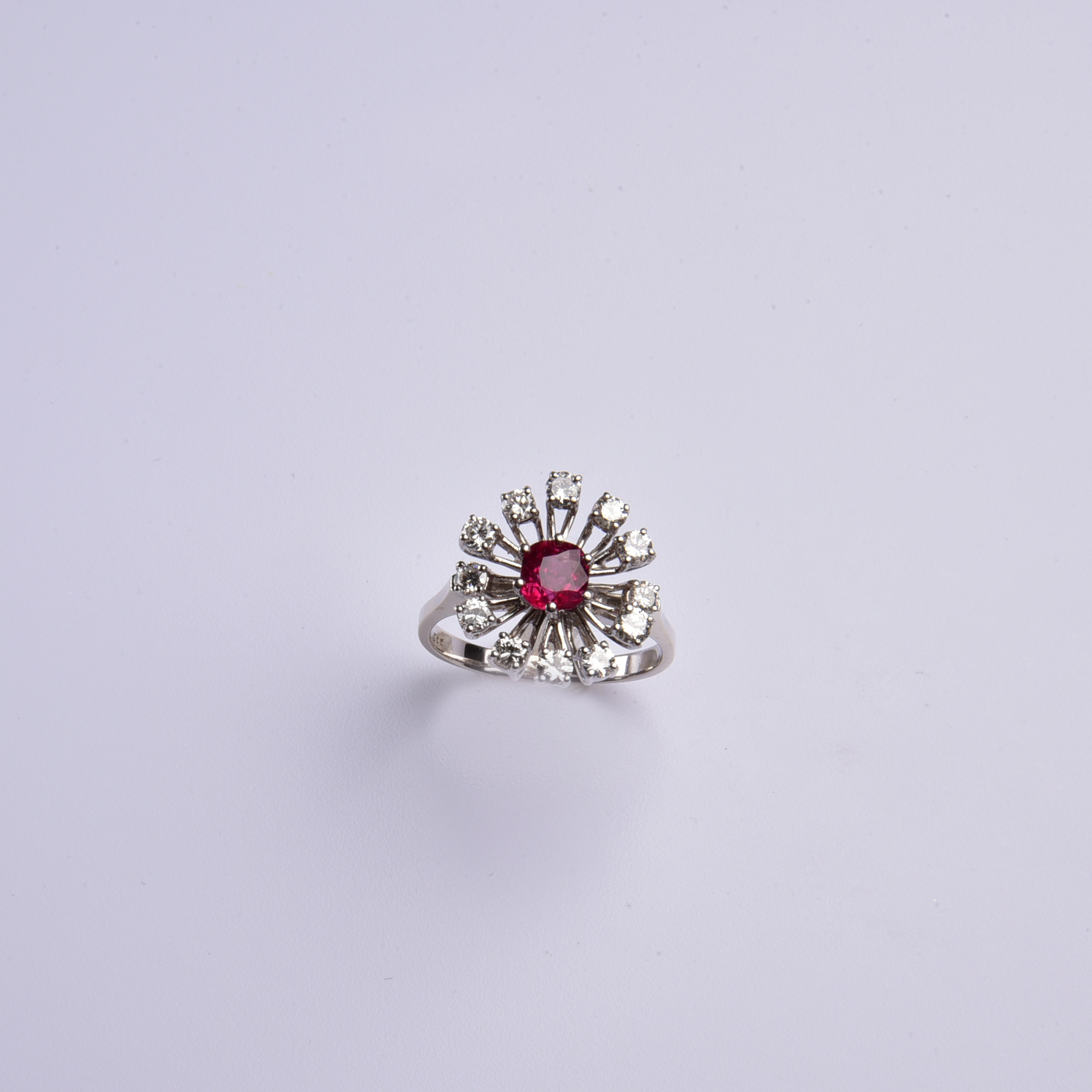 Ein leuchtend roter Rubin, kühles Weißgold und strahlend weiße Brillanten in bester Qualität – der hier vorgestellte Ring verströmt Lebensfreude und Optimismus!