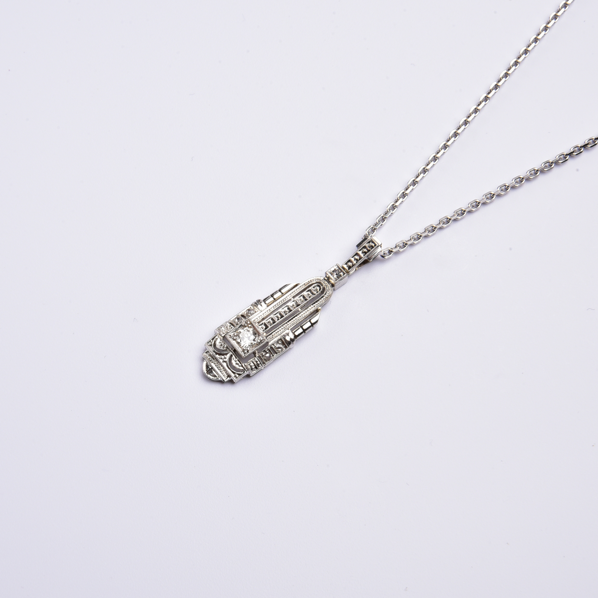 Eben aus dieser Epoche – um 1930 – entspringt unser extravagant gestalteter Anhänger, ganz in den typischen Formen des Art Déco!