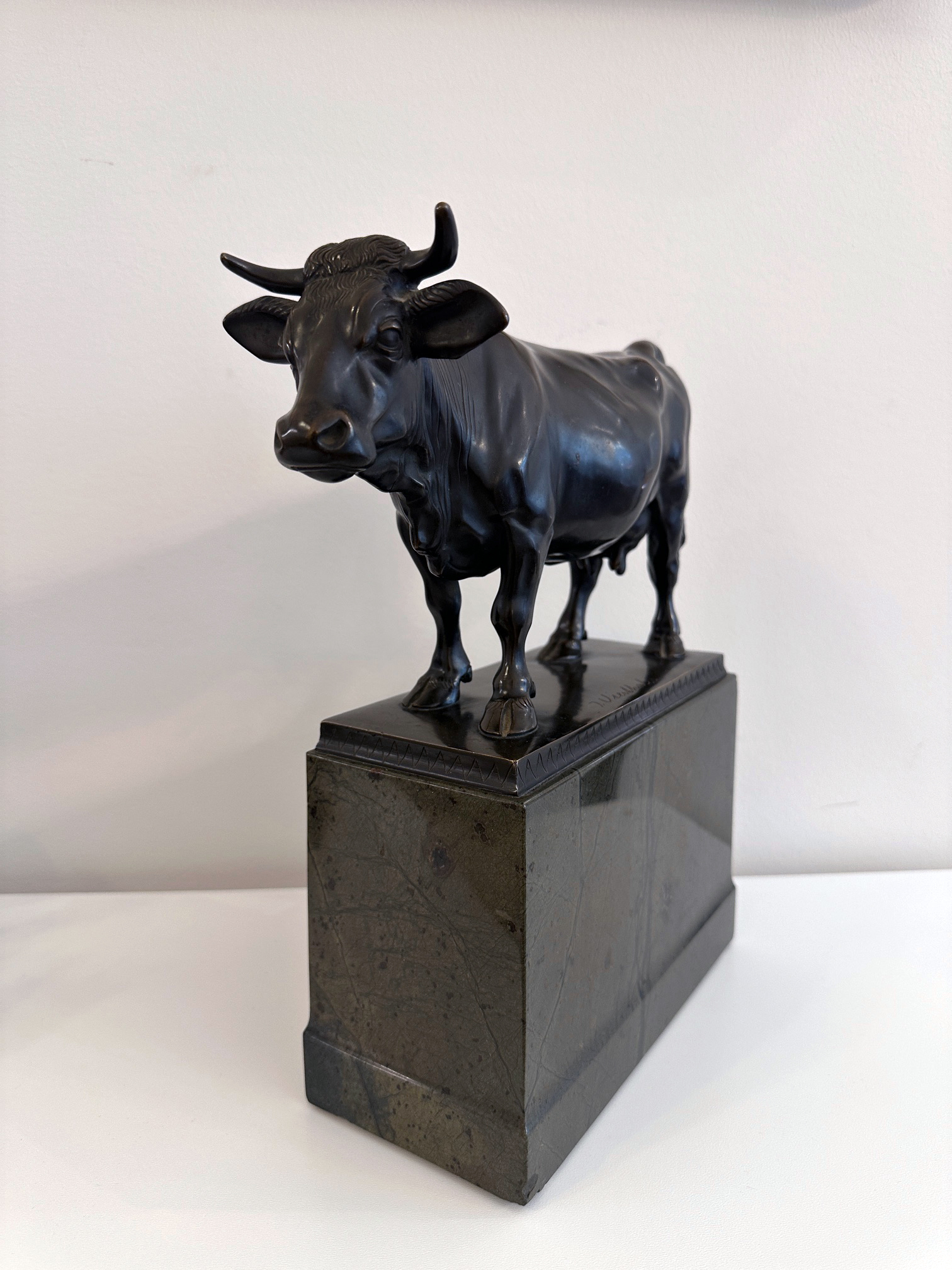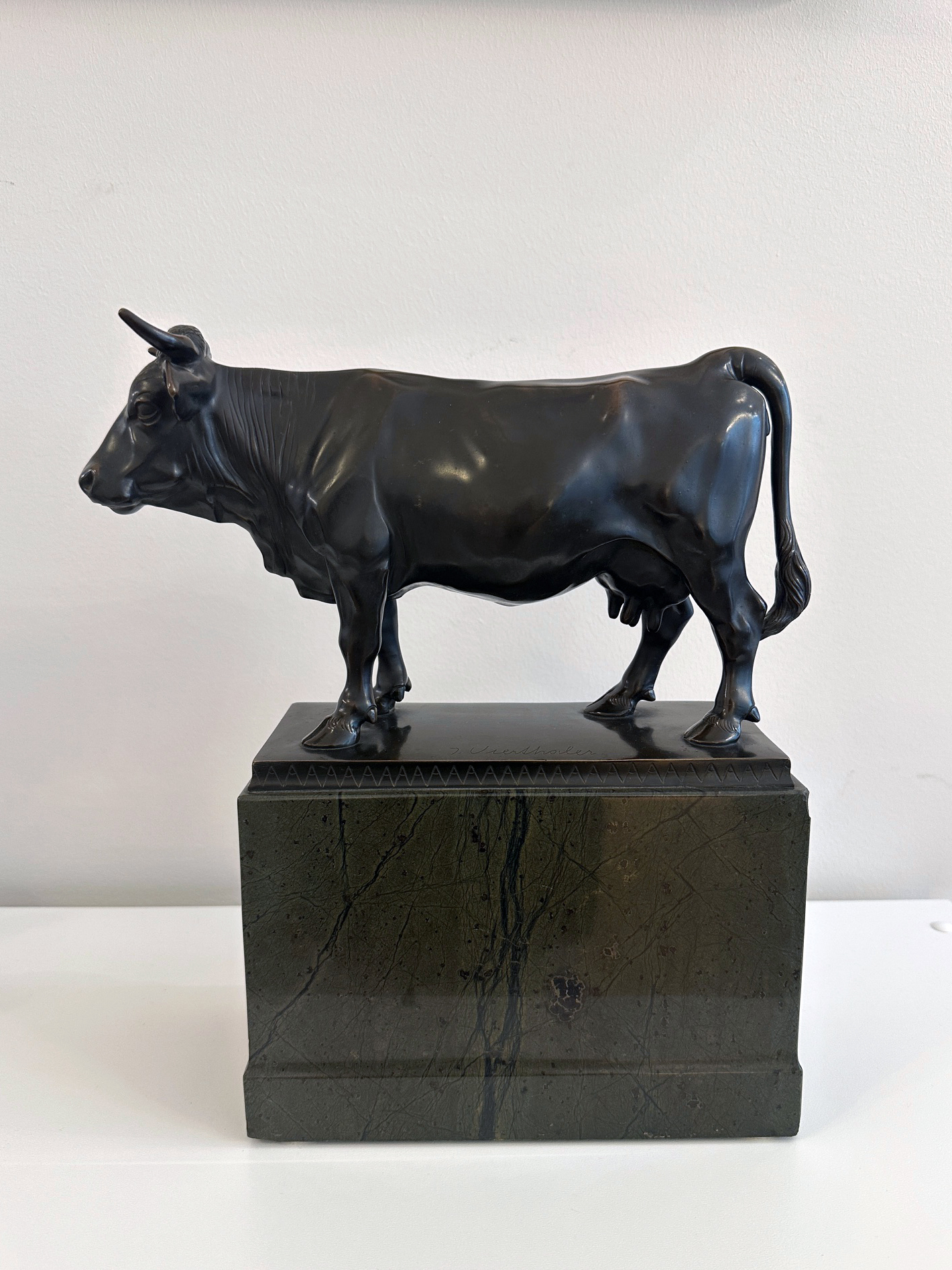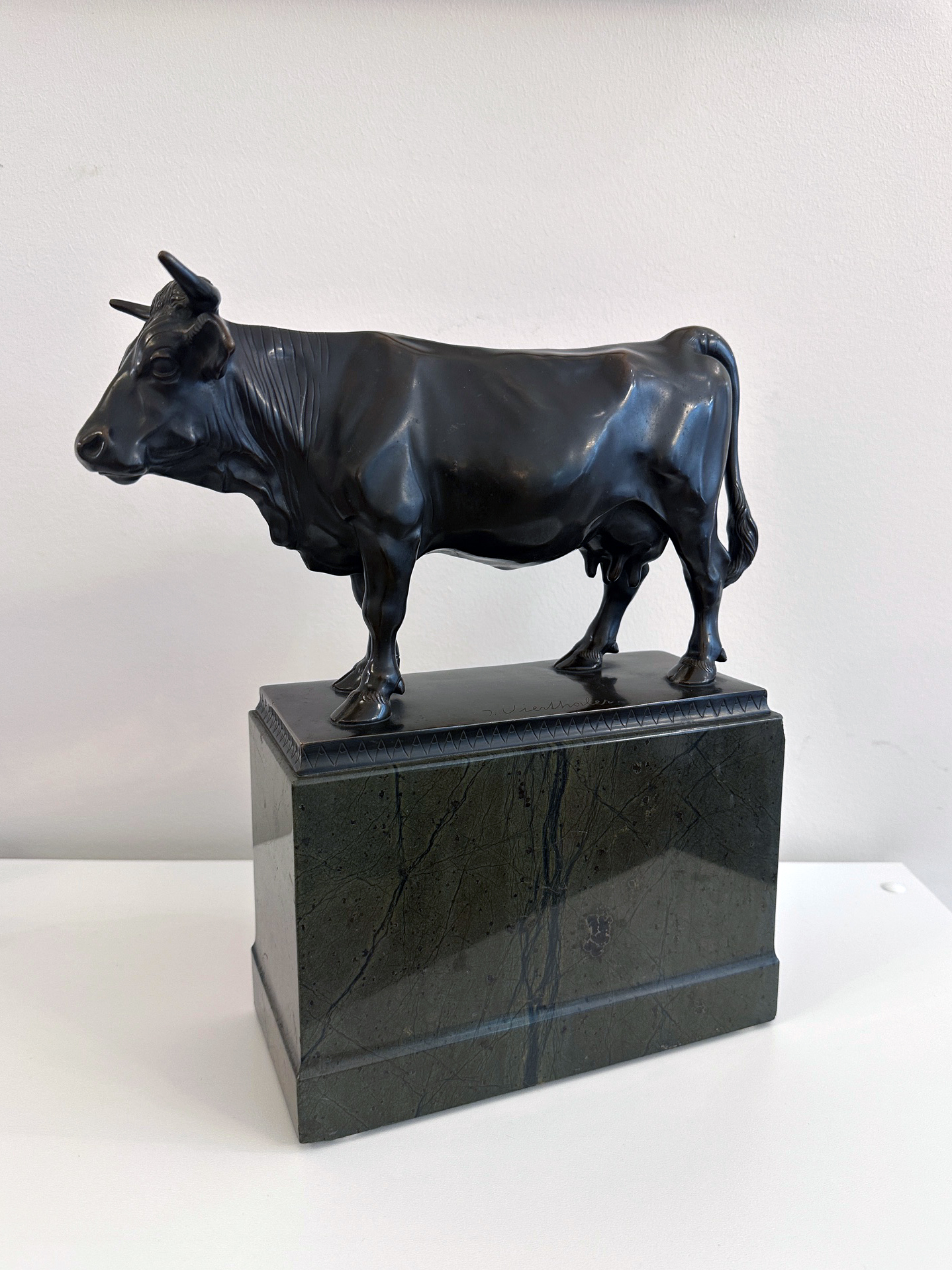 Johann Vierthaler – Bronze Kuh auf Serpentin Sockel