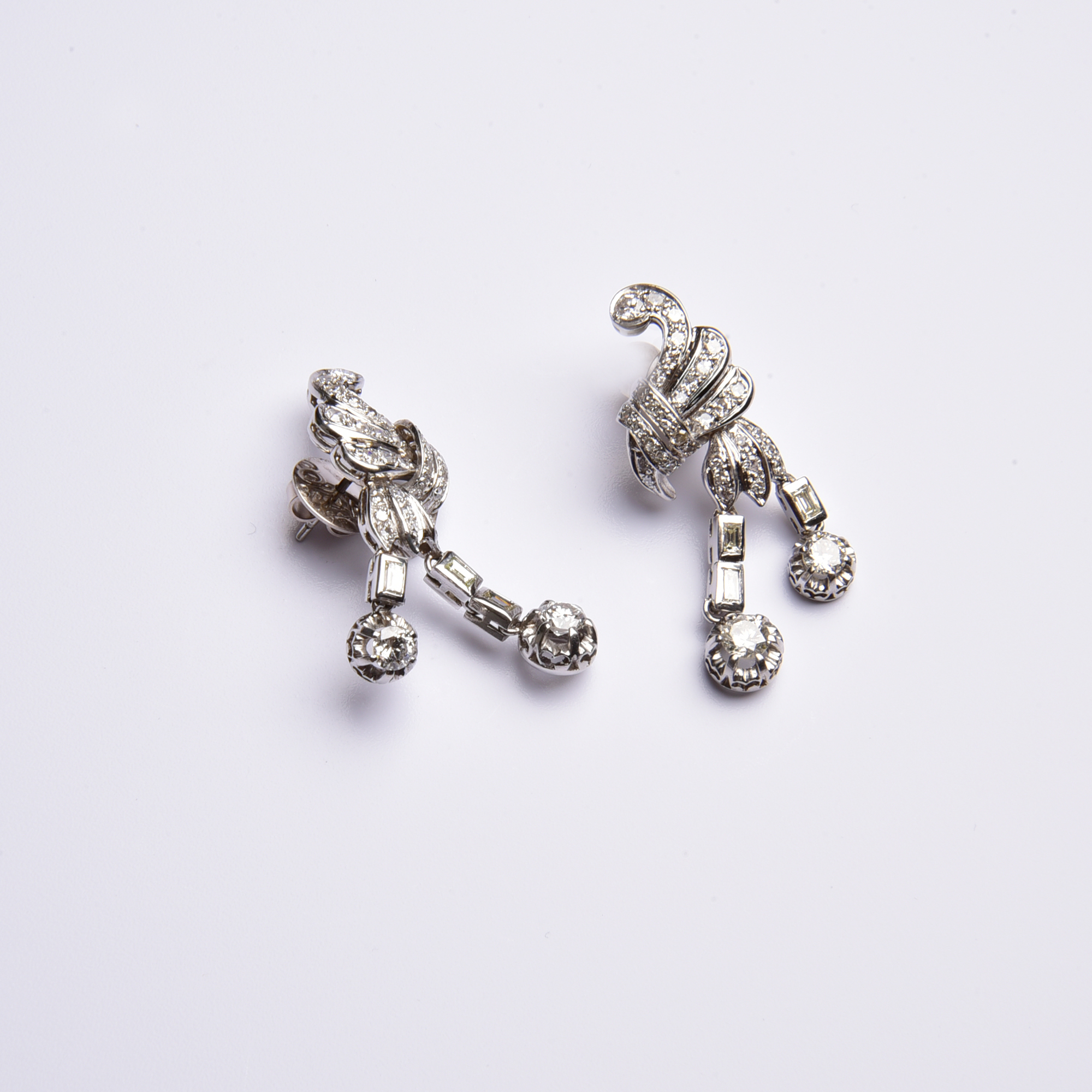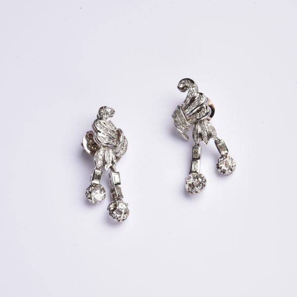 Die hier vorliegenden Ohrringe sind übersät mit diesen kostbaren Preziosen – funkelnd und mit blitzenden Lichtreflexen schmücken sie unseren Ohrschmuck in verschiedenen Formen und Schliffen.