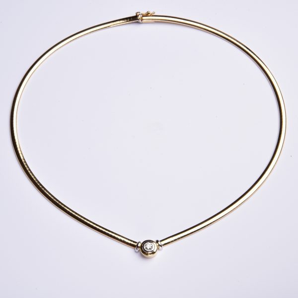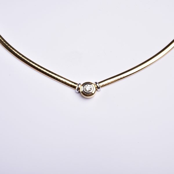 Das Schmuckstück ist in 585 Gelbgold gestaltet – auf der polierten Oberfläche wird der blitzende Brillant in ausgesuchter Qualität – leicht erhöht – wirkungsvoll inszeniert.