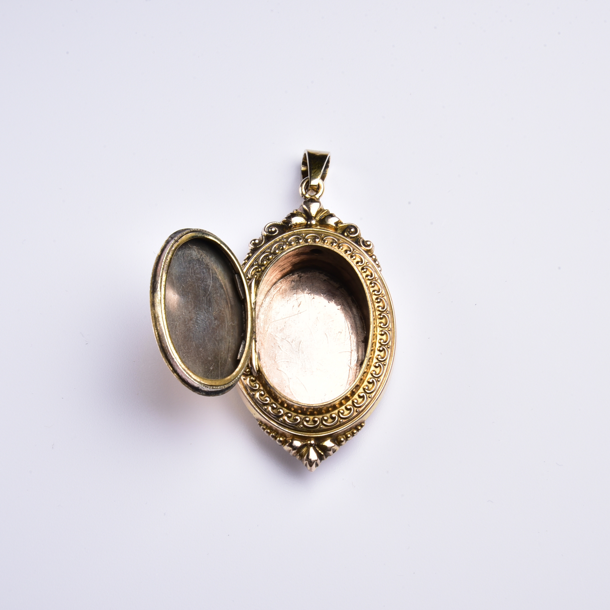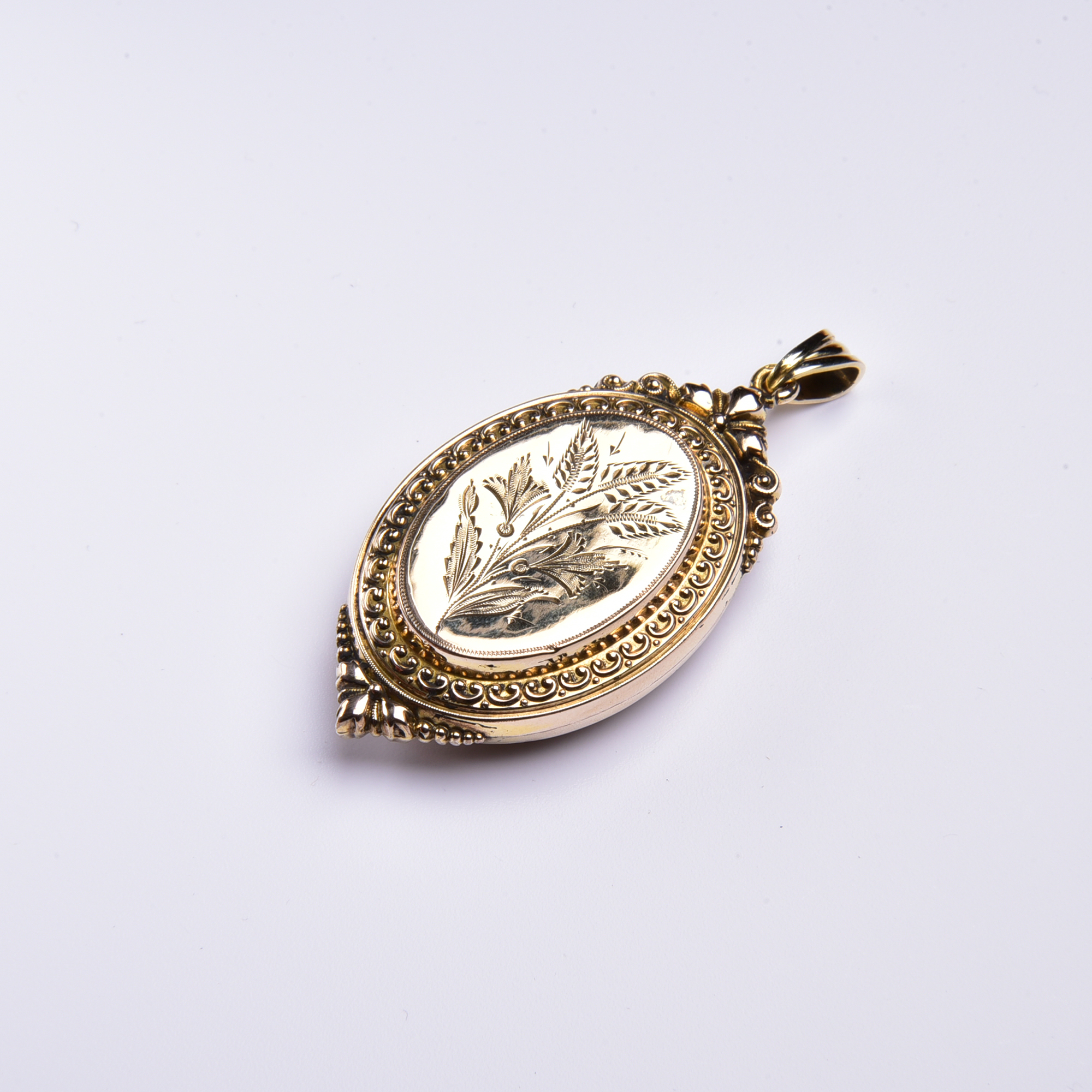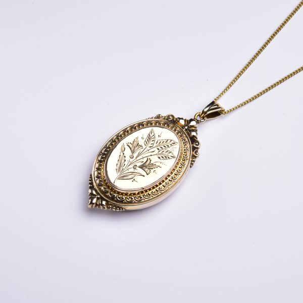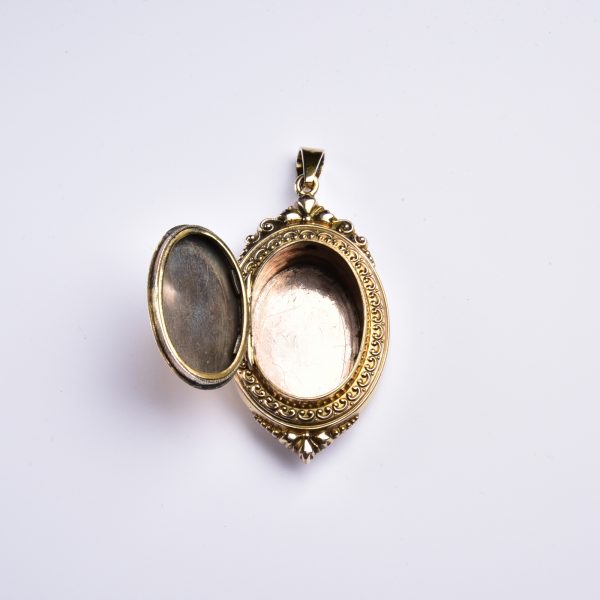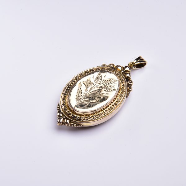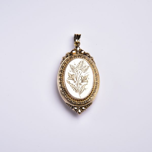 Das hier vorgestellte Medaillon wurde um 1880 aus getriebenem Gold – dem sogenannten Schaumgold – liebevoll gestaltet!