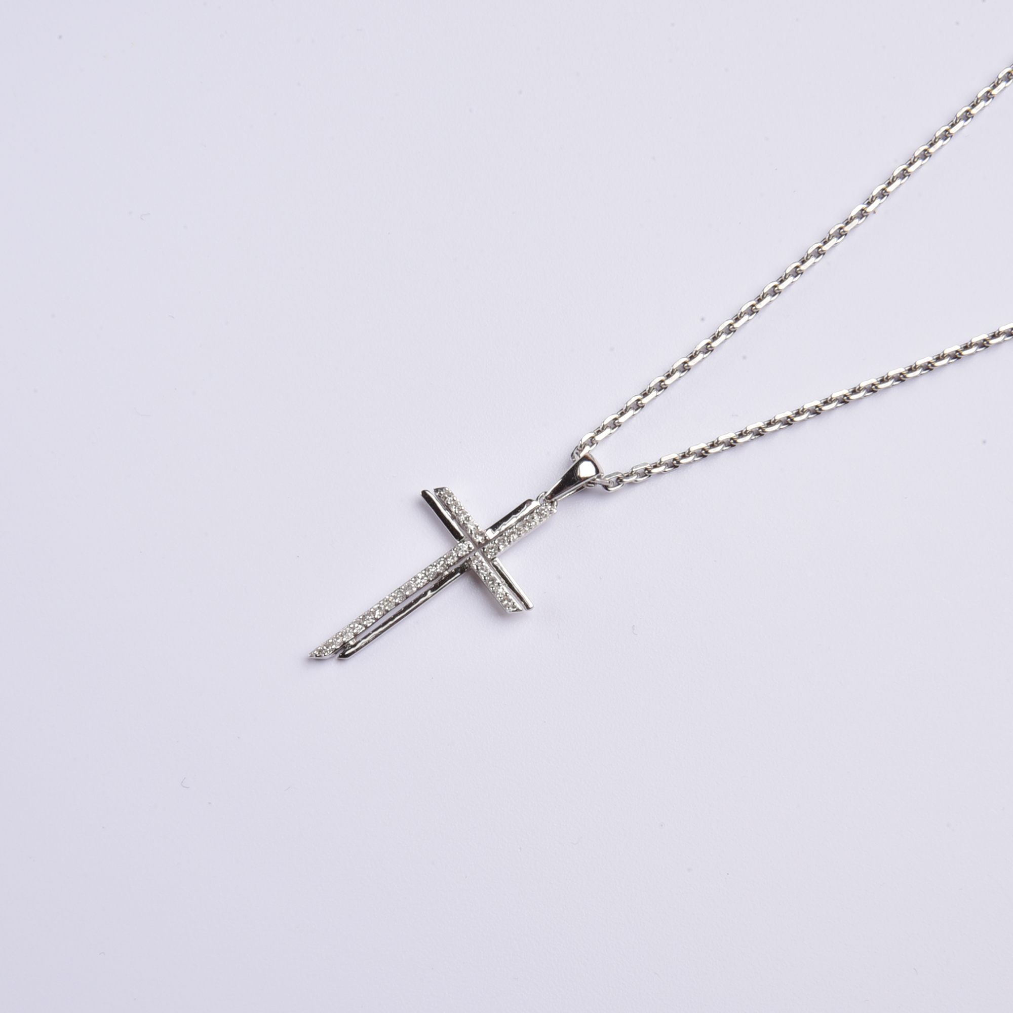 Unser hier präsentiertes, fein gearbeitetes Kreuz ist in hellem Weißgold gearbeitet und präsentiert blitzende Diamanten als leuchtende Augenweide!