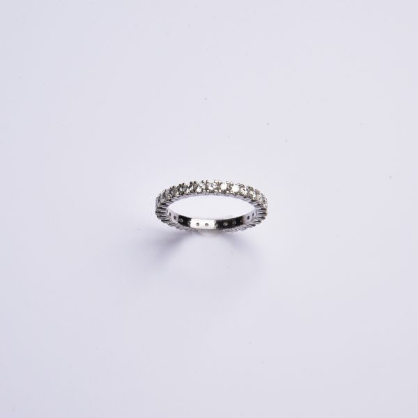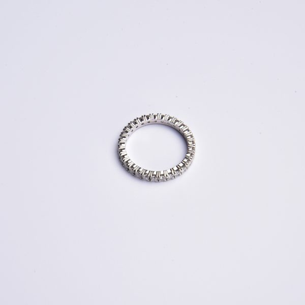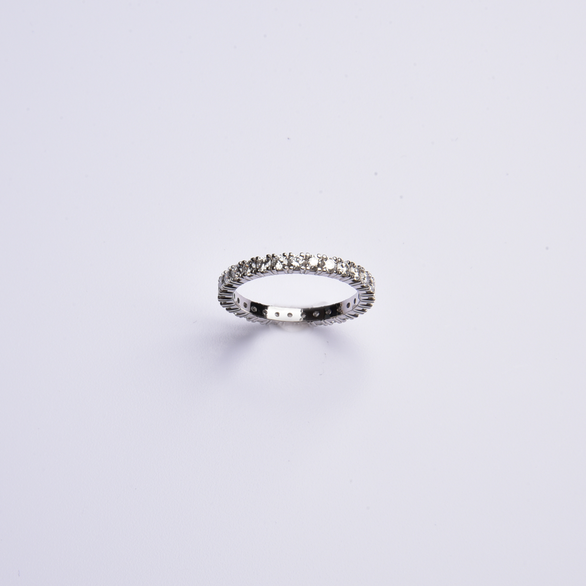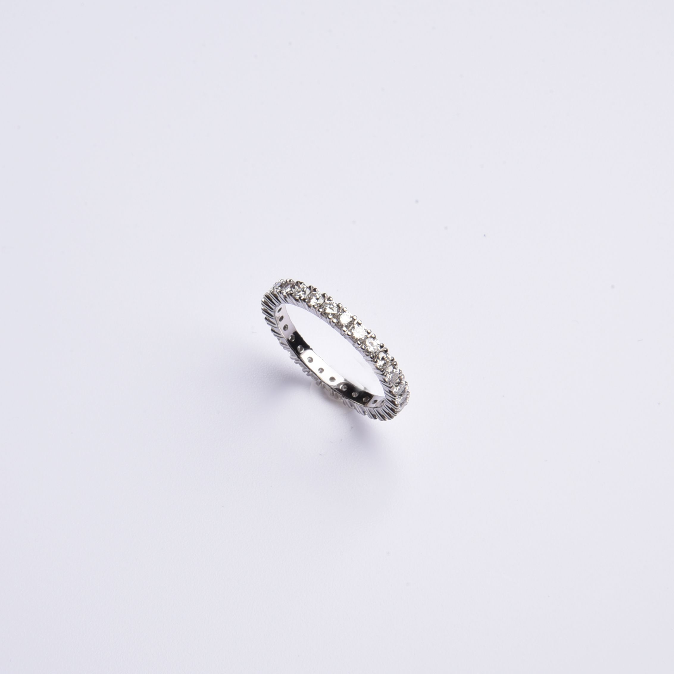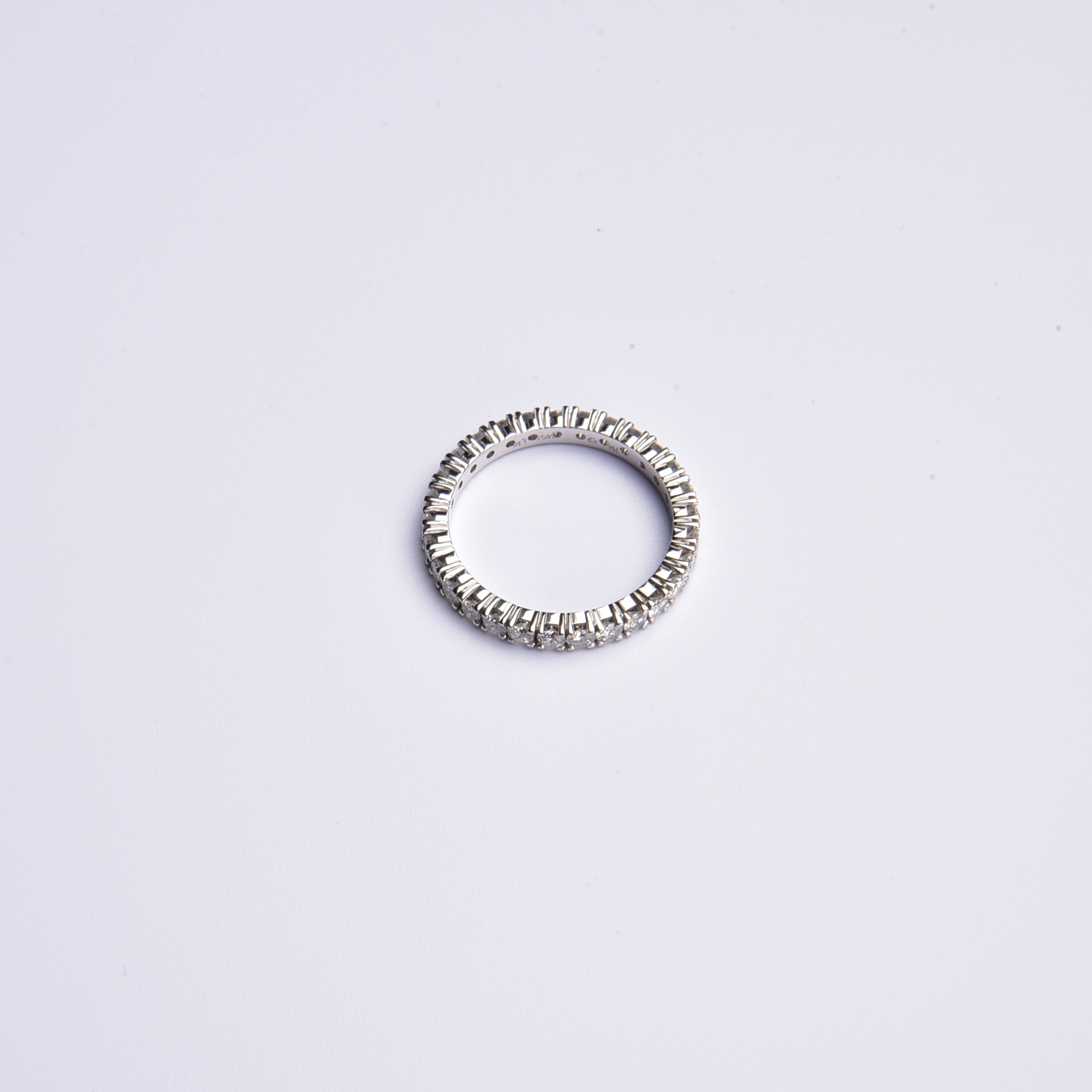 Ein funkelndes Band aus weiß blitzenden Brillanten zieht sich vollständig um die Ringschiene aus 750 Weißgold herum.