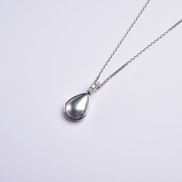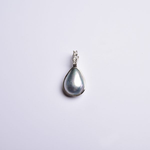 Eine große Mabéperlen mit seidig grauem Lüster inspirierte zu dem zauberhaften Entwurf des hier gezeigten Anhänger Clips!